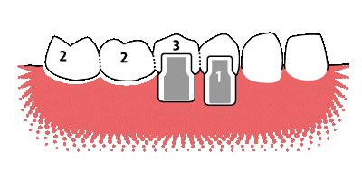 Eine Freiendbrücke, also eine Zahnbrücke, die auf einer Seite ein “Brückenzwischenglied” hat, das nicht an einem Pfeilerzahn angedockt ist, sondern sozusagen freischwebt, ist statisch gesehen immer schlechter als eine Endpfeilerbrücke, weil die Hebelwirkungen bei einer einseitigen Auflage deutlich höher sind. Aus diesem Grund werden bei Freiendbrücken i.d.R. wie in Abbildung 1 ersichtlich, pro Freiend-Glied zwei Pfeilerzähne verwendet (doppeltes knöchernes Attachment), um das lose Ende zu halten. Darüber hinaus werden die Pfeilerzähne untereinander verblockt, um zusätzlichen Halt zu erreichen.